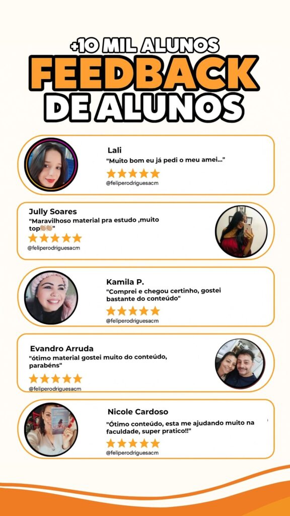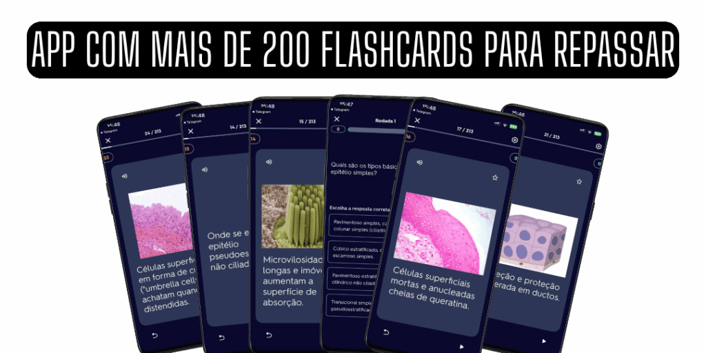Você recebe acesso aos materiais no formato PDF dentro da nossa plataforma. É possível baixá-los tanto na versão digital quanto para impressão. Além disso, disponibilizamos um app de flashcards para você repassar todo o conteúdo onde e quando quiser.