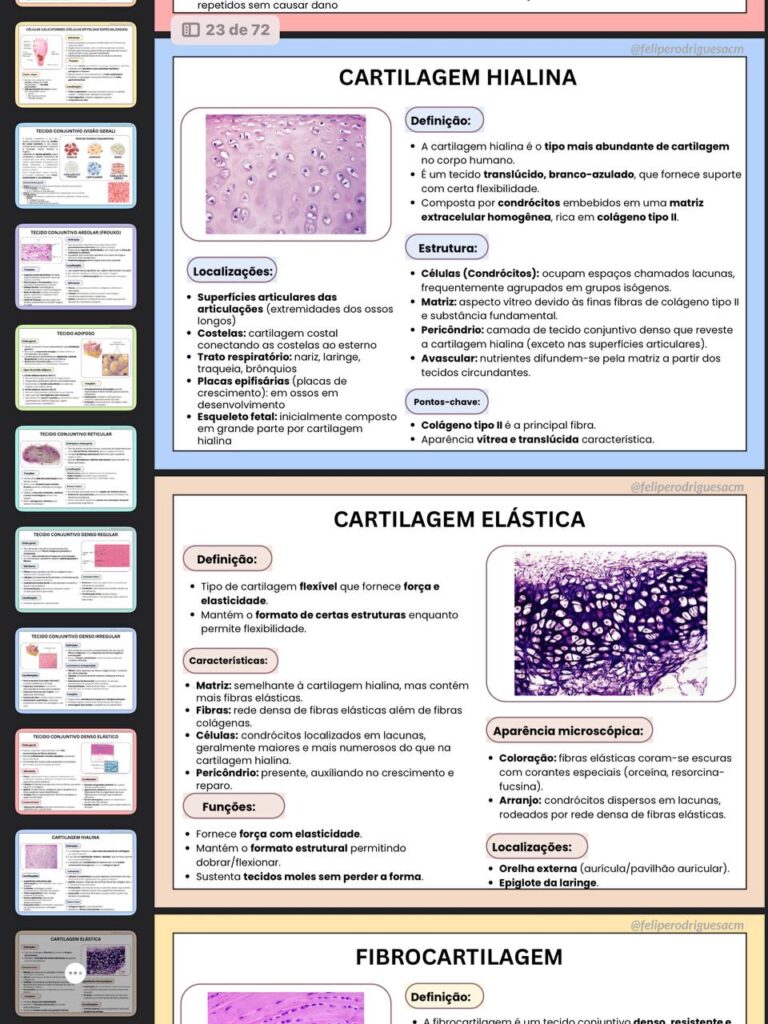 Suporte, fibras, células e variedades (frouxo, denso, adiposo, cartilagem, osso e sangue).